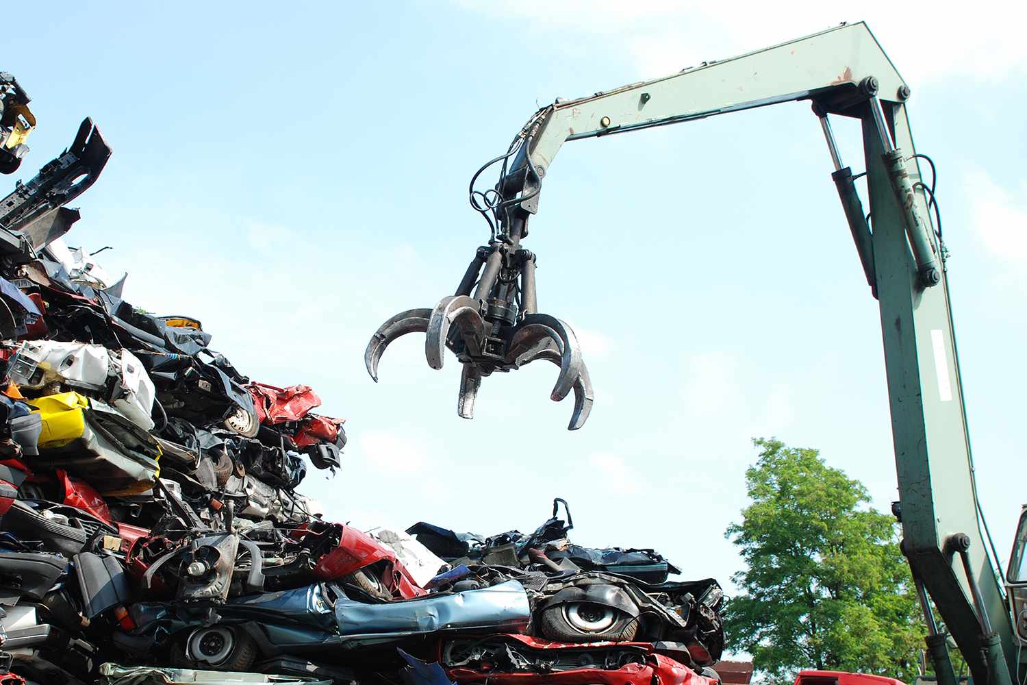 A stock photo of a car junkyard