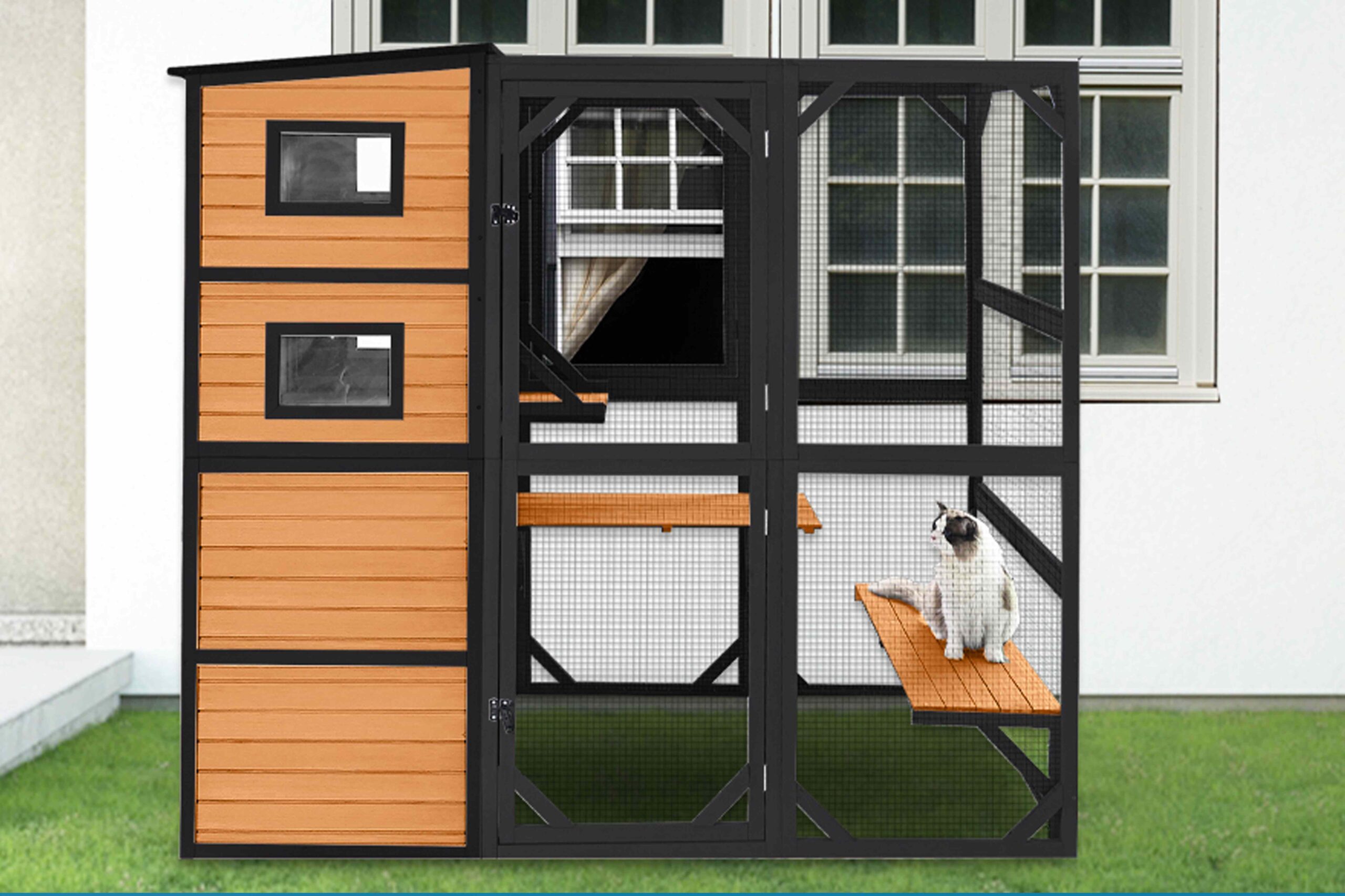 It has three rooms, two of which have acrylic windows. There are also two observation decks plus a loft so cats can enjoy different vantage points of all the backyard action. While you can leave these spaces bare, some people outfit them with cat beds, blankets, or pillows for additional warmth and comfort.