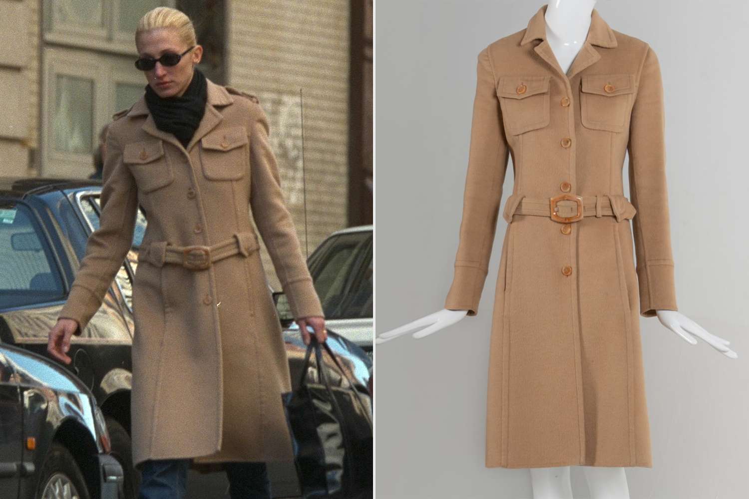 Carolyn was photographed wearing the camel-colored coat in the late '90s