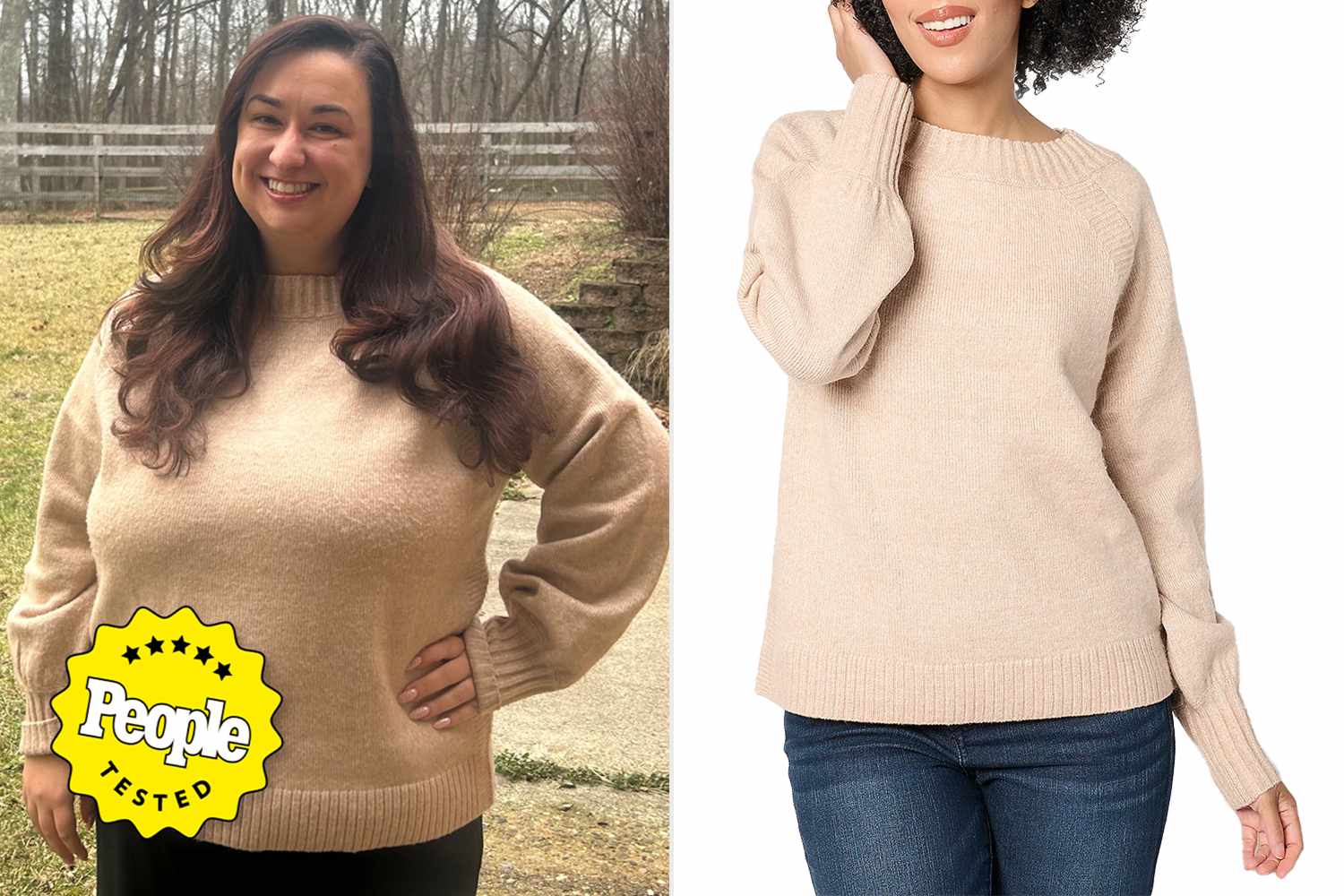I have more than a dozen options hanging in my closet, but I’ve been on the hunt for a tan-colored layer. I wanted something to wear with my collection of black jeans, pants, dresses, and skirts that wouldn’t look drab and would be easy to care for. As much as I love my cashmere and wool options, I get annoyed every time I need to hand-wash them or send them to the cleaners.