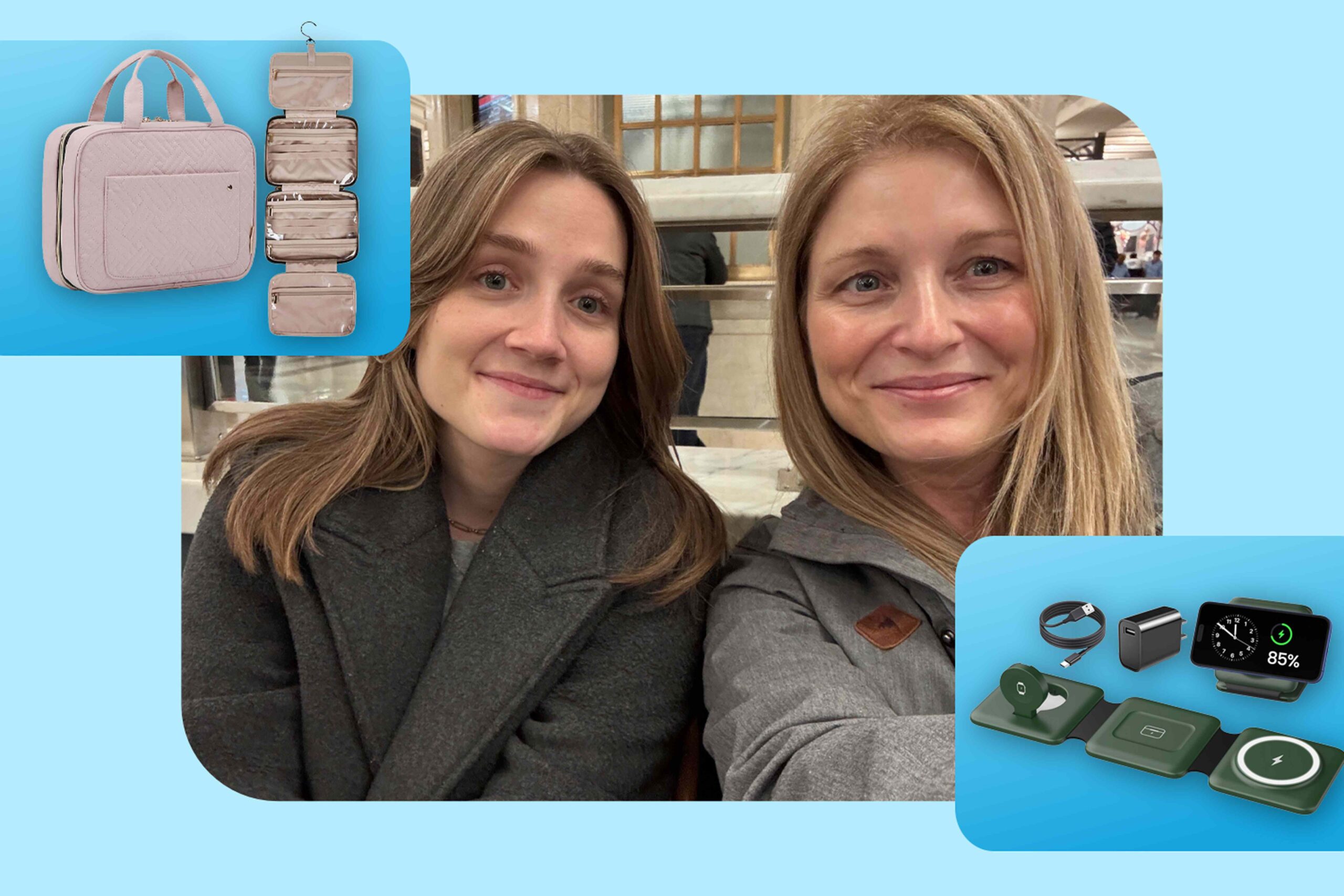Instead of packing a mix of cords, this folding charge station cuts down your packing list and is compact enough to slip into a purse, too. You’ll always see one with my mom because, as she puts it, you don’t know how many outlets will be in a hotel room — and it prevents a mess of electronics scattered all over the hotel room.