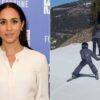 The Duchess of Sussex shared the video in an Instagram post on Thursday, April 2 Left: Meghan Markle Right: Prince Archie skiingCredit: Leigh Vogel/Getty;Meghan...