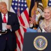 Humphries gifted Trump an Order of Ikkos medal for "standing up to keep biological women in women's sports to keep the field of play...