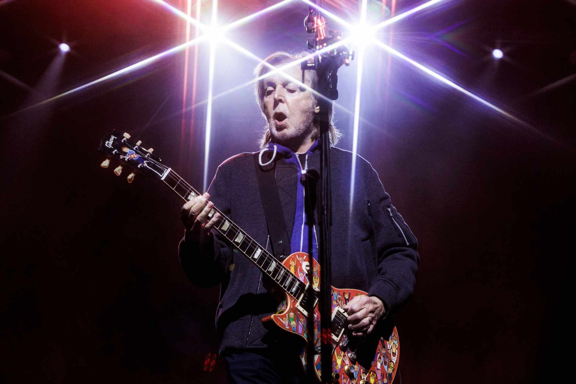 Instead, the spotlight was on his beloved back catalogue spanning six decades, including a plethora of Beatles classics, including “Help!,” “Got to Get You into My Life,” “Getting Better,” “I’ve Just Seen a Face,” “Love Me Do,” “Lady Madonna,” “Let It Be,” Hey Jude,” “Ob-La-Di, Ob-La-Da,” “Get Back,” “Golden Slumber,” “Carry That Weight,” “The End” and especially tender renditions of his late bandmate John Lennon’s posthumously produced and released ballad “Now and Then” (“Thank you, John, for writing that,” he offered), as well as the longtime McCartney signature “Blackbird.”