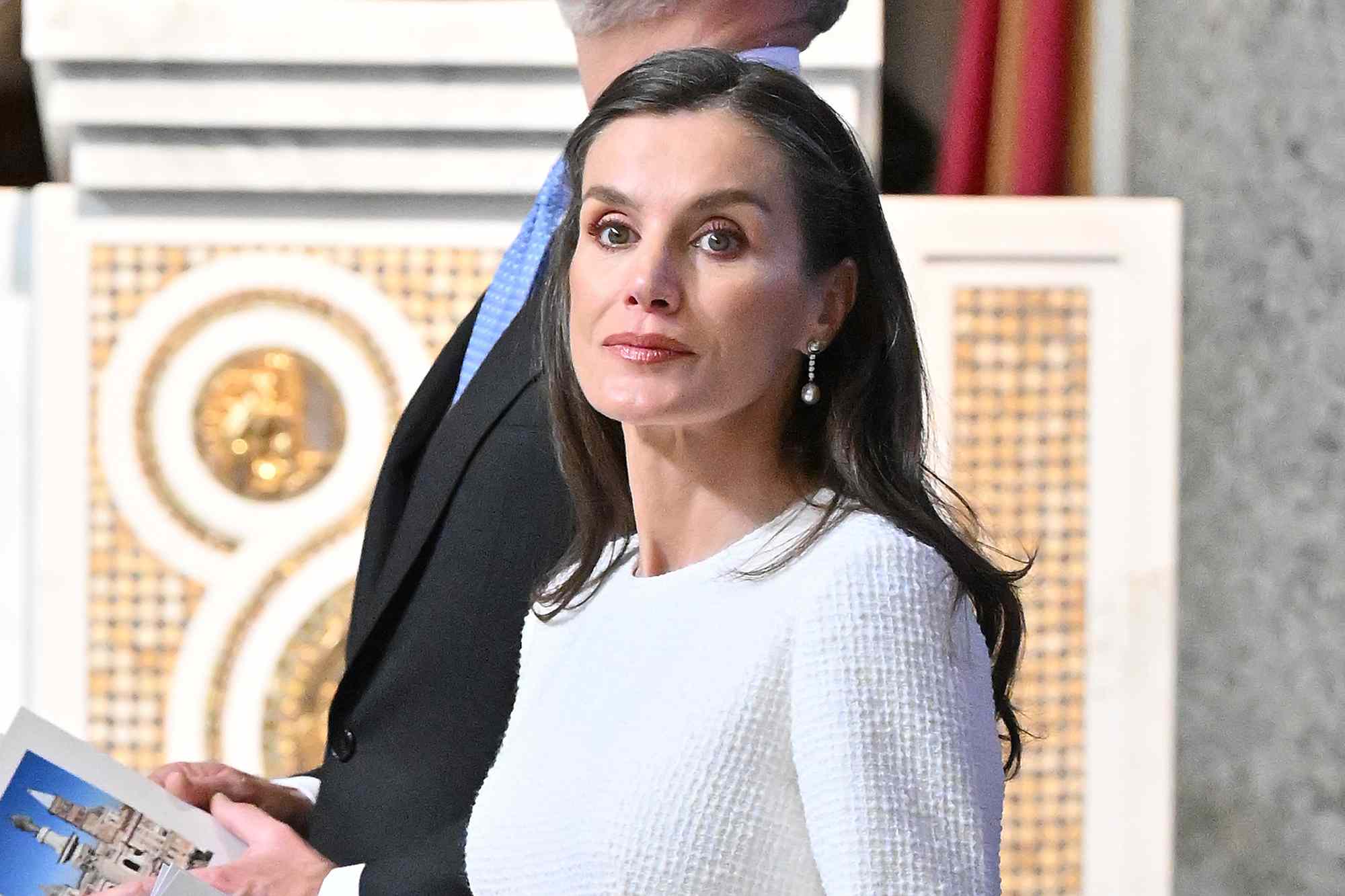 - Queen Letizia of Spain wore white to an audience with Pope Leo XIV in Vatican City, and she one of just seven women in the world permitted to do so