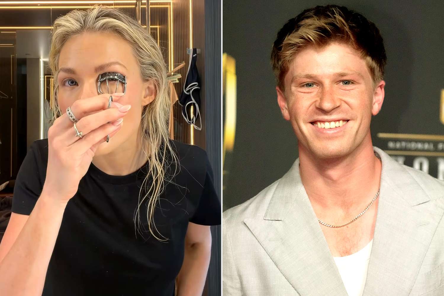 "Hi, I'm Witney Carson. Joke, it's Robert Irwin! Here we go," Irwin begins the video, which captures only his commentary and pictures Carson solo on screen as she prepares to do her makeup for the clip shared on Monday, March 30.