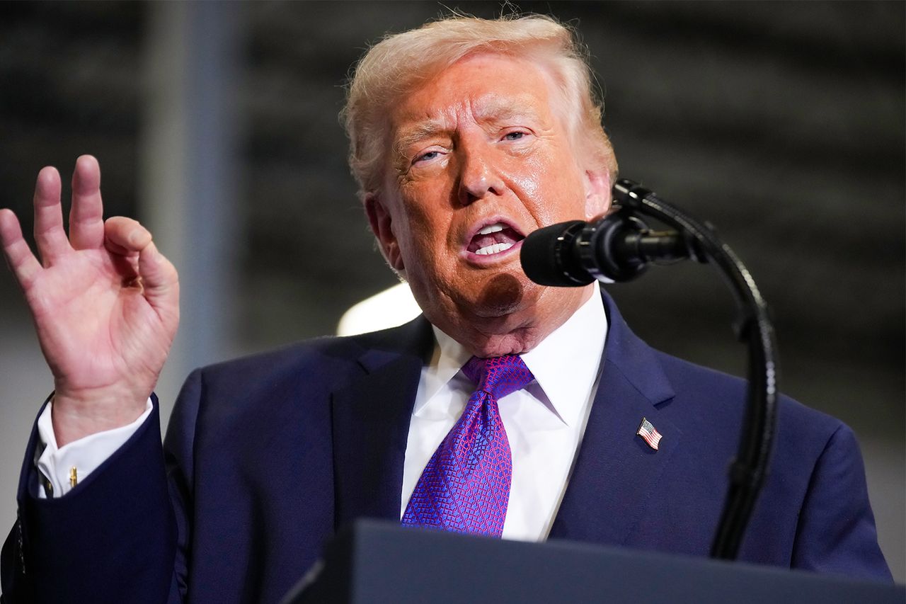U.S. President Donald Trump speaks on stage at Verst Logistics on March 11, 2026 in Hebron, Kentucky.