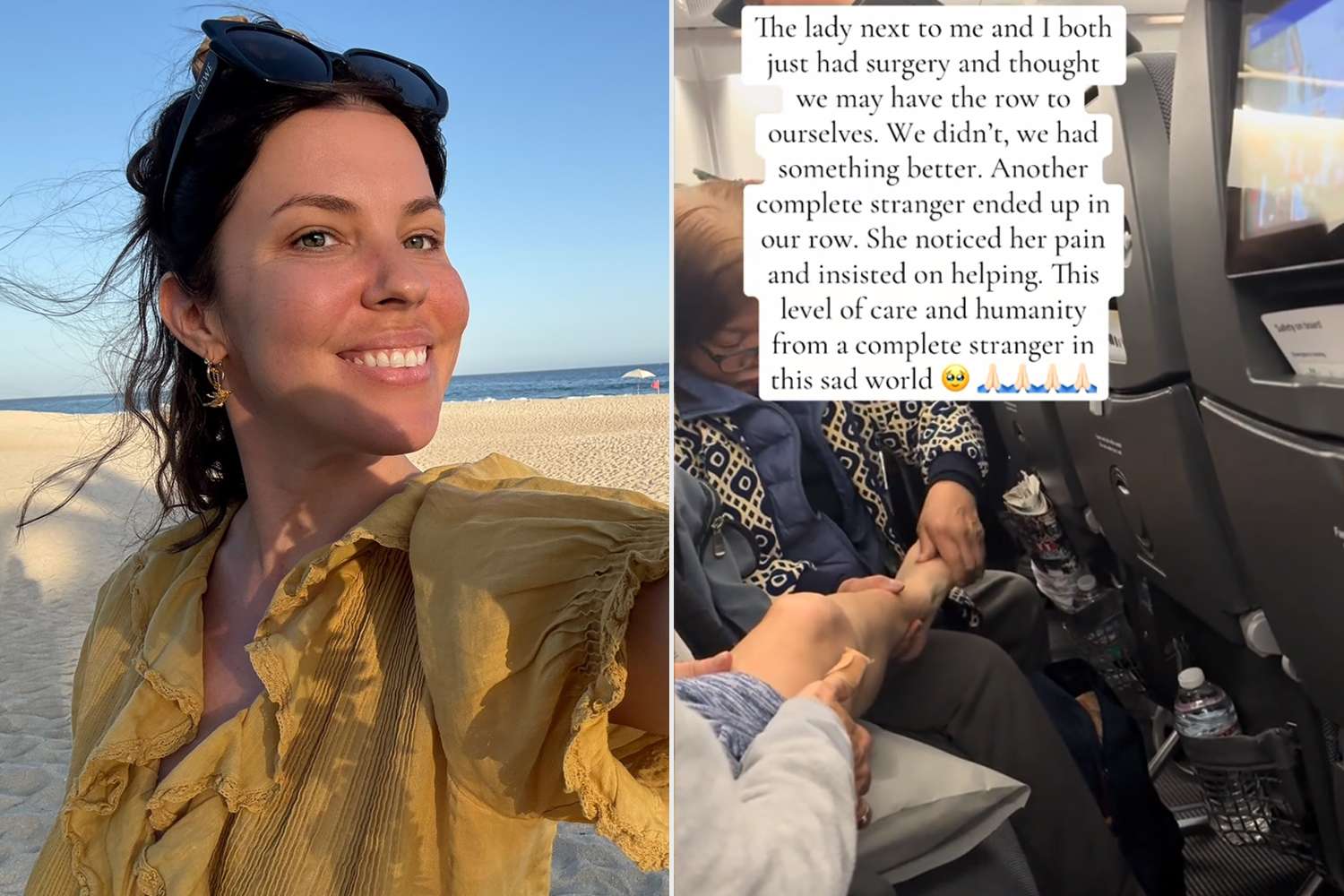 “The lady next to me and I both just had surgery and thought we may have the row to ourselves. We didn’t, we had something better," she captioned the clip. "Another complete stranger ended up in our row. She noticed her pain and insisted on helping. The level of care and humanity from a complete stranger in this sad world.”