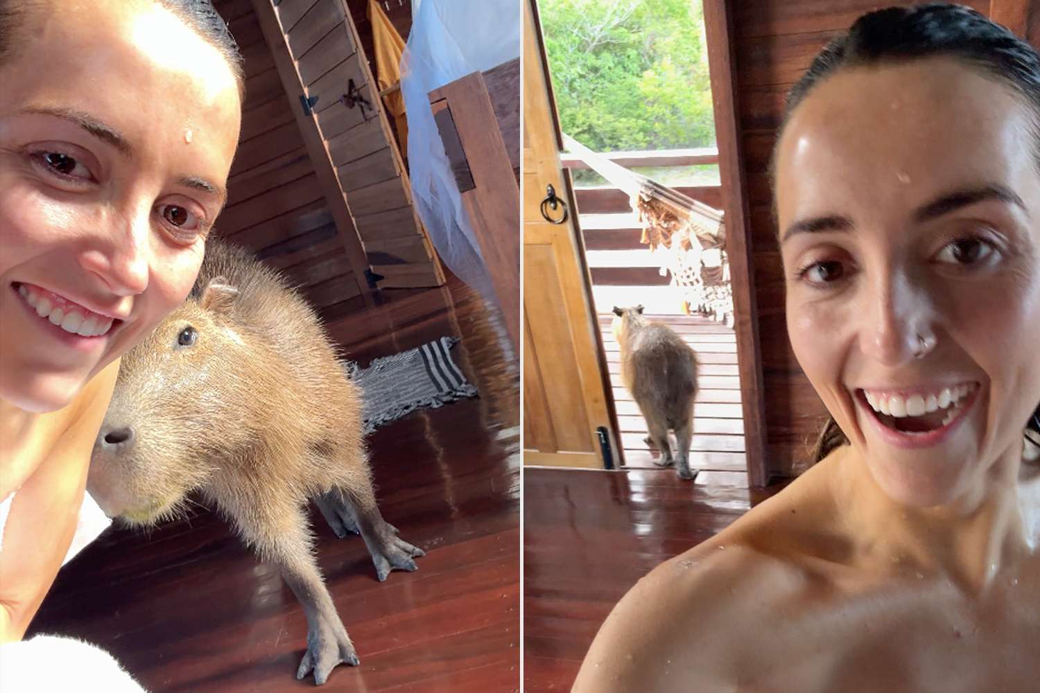 “I was on a trip to Guyana to learn about the wildlife in the Rupununi Savannah, local conservation efforts and the expansion of tourism in the country,” she tells PEOPLE. “I was staying at Whichabai Ranch when the capybara entered my room.”