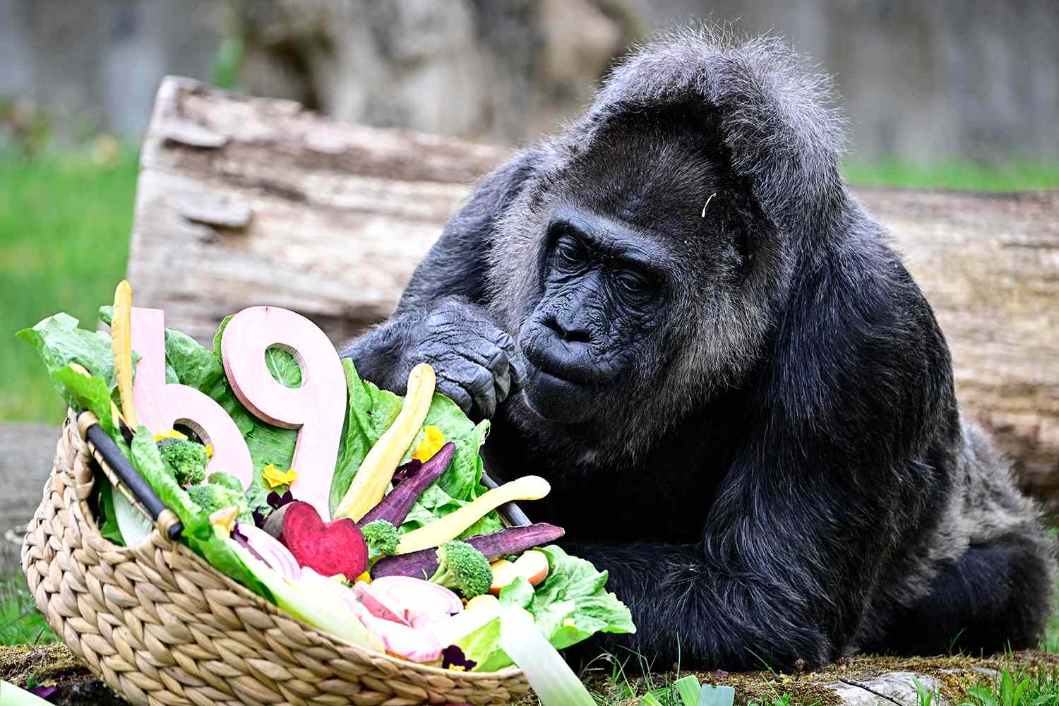 - Instead of a birthday cake, the zoo gave the aging primate a basket of beets, broccoli, lettuce and other vegetables